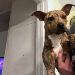 BREED: Mix COLOR: Brindle SEX: Female AGE: Young (less than 1 year) ALTERED: Unaltered COLLAR/HALTER:…